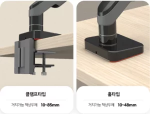 본인의 책상구조에 따라서 클램프타입으로 할것인지 홀타입으로 할것인지 결정해서 설치하시면 됩니다!