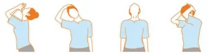 목을 천천히 좌우로 돌려주고 위 아래로 천천히 움직여주어 굳어있는 목을 풀어줍니다.